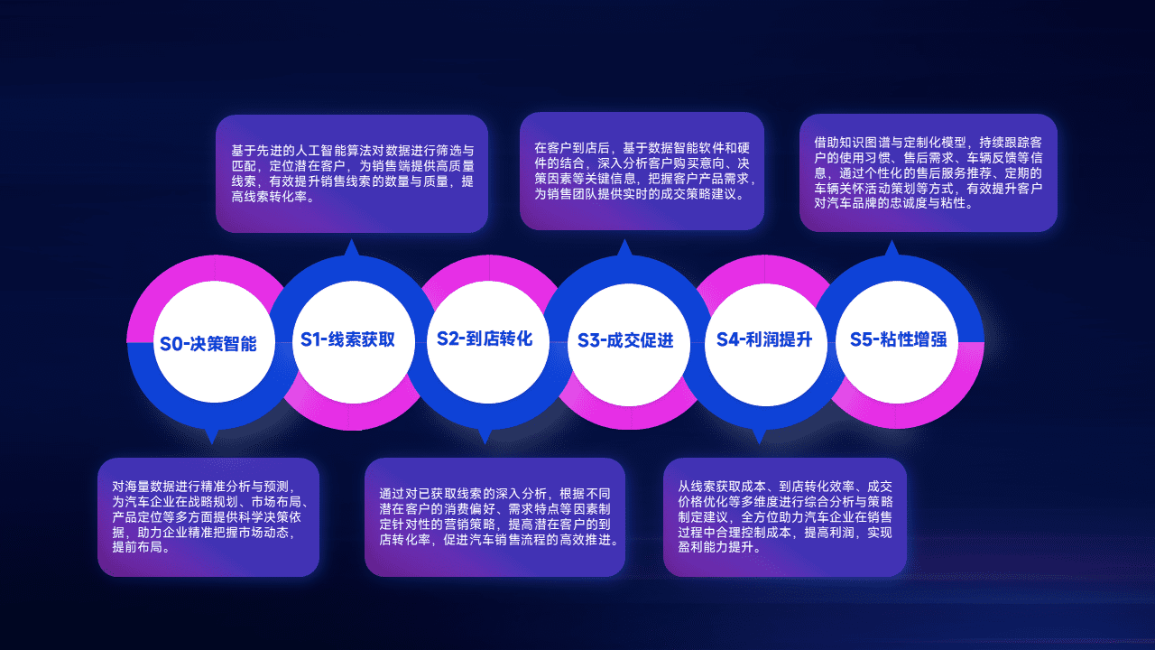 通过拓宽潜在客户来源、、优化线索分配并提高到店转化率,,,,以增强销售效率。。。。同时,,,,利用线索数据不断优化分析模型,,,,有效提升转化率,,,扩大营销影响力。。。